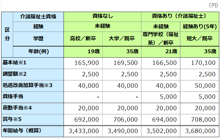 ※3 「処遇改善加算手当」:資格、経験、実績評価により決定。上記額は在籍1年以上