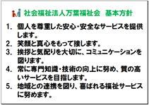 我が法人は、信用を第一として利用者並びに家族等から喜ばれる良い処遇、良い介(看)護サービスを提供し、事業の発展を通して地域福祉の向上に寄与する。